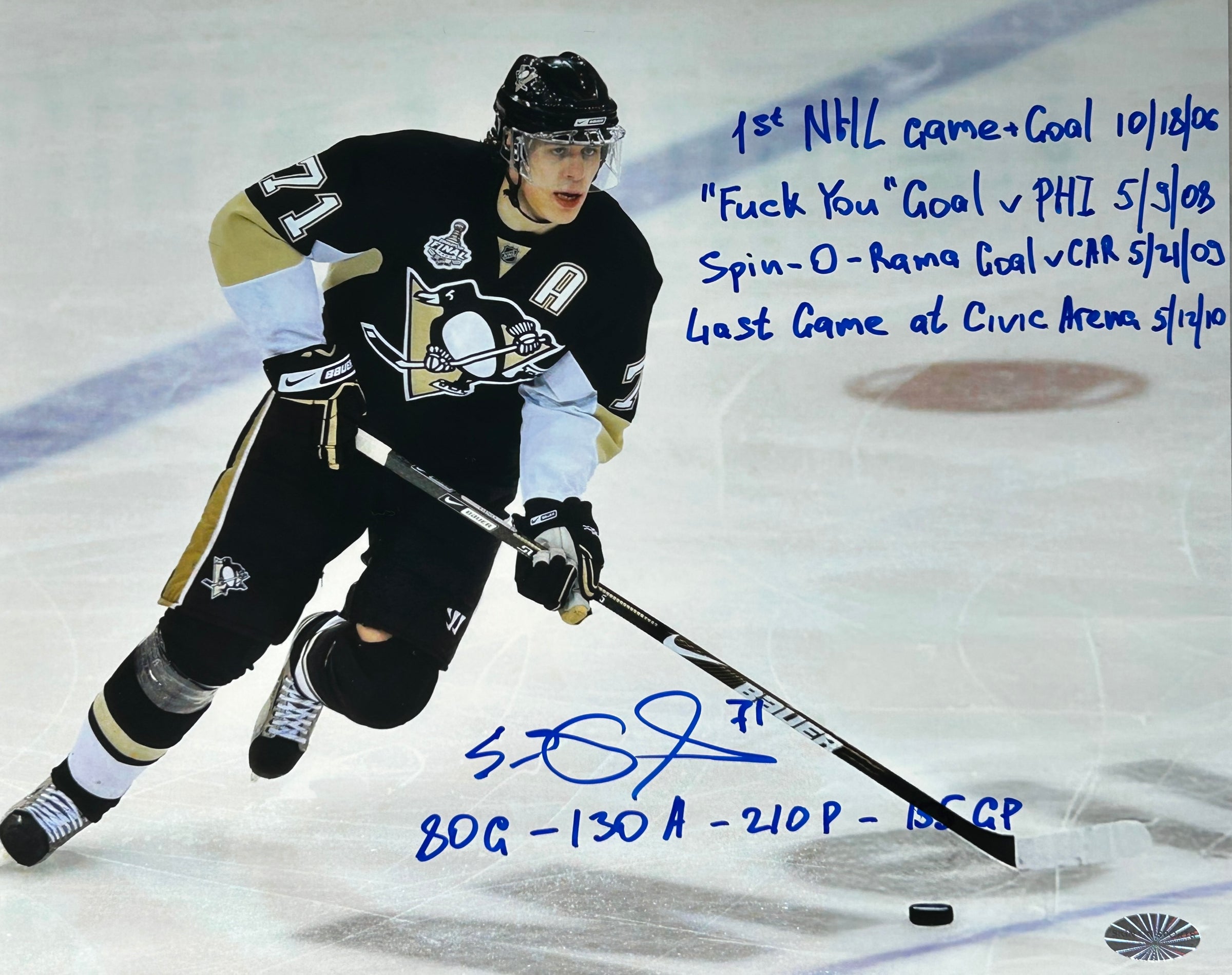 Evgeni Malkin Autographed, Inscribed Stats and Highlighted Moments from Regular Season at Mellon Arena Pittsburgh Penguins 8x10 Photo, which Evgeni personally hand-signed.