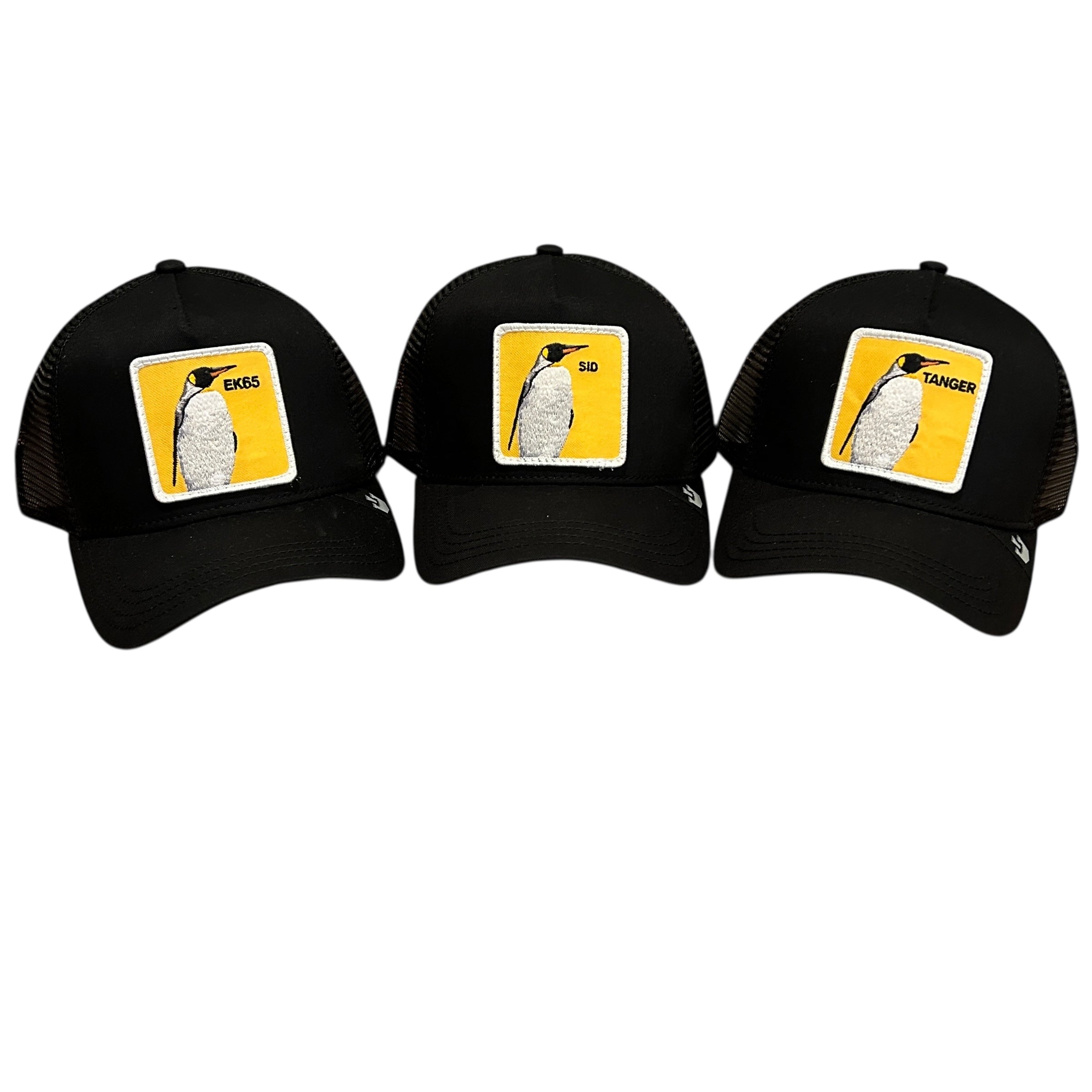 Sidney Crosby Penguin Sid, Erik Karlsson EK65, & Kris Letang Tanger Black Goorin Bros. Trucker Hats.