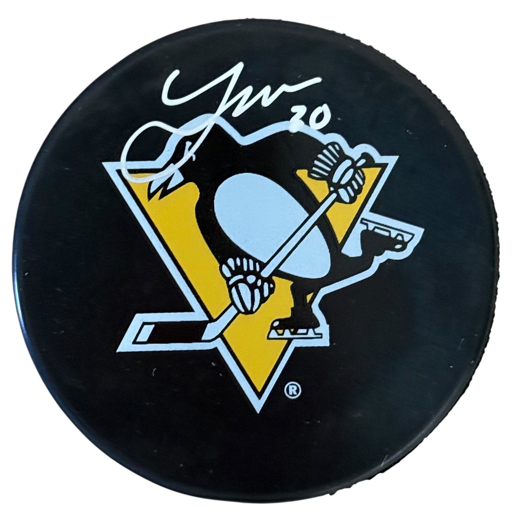 Joel Blomqvist Autographed Pittsburgh Penguins Large Logo Puck, which Joel personally hand-signed.