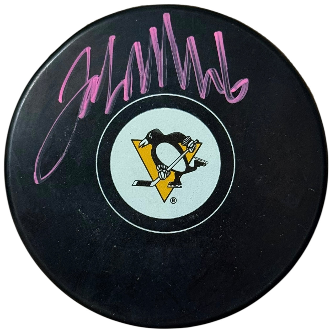 John Marino Autographed Pittsburgh Penguins Hockey Puck, which John personally hand-signed in Pink.