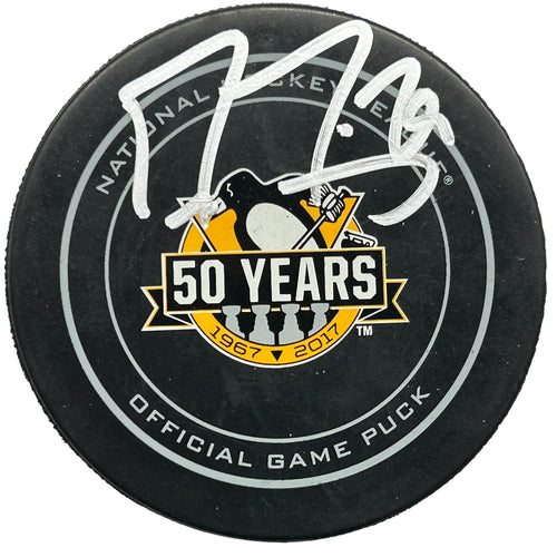 Marc-Andre Fleury Signed Pittsburgh Penguins 50 Years Game Model Puck