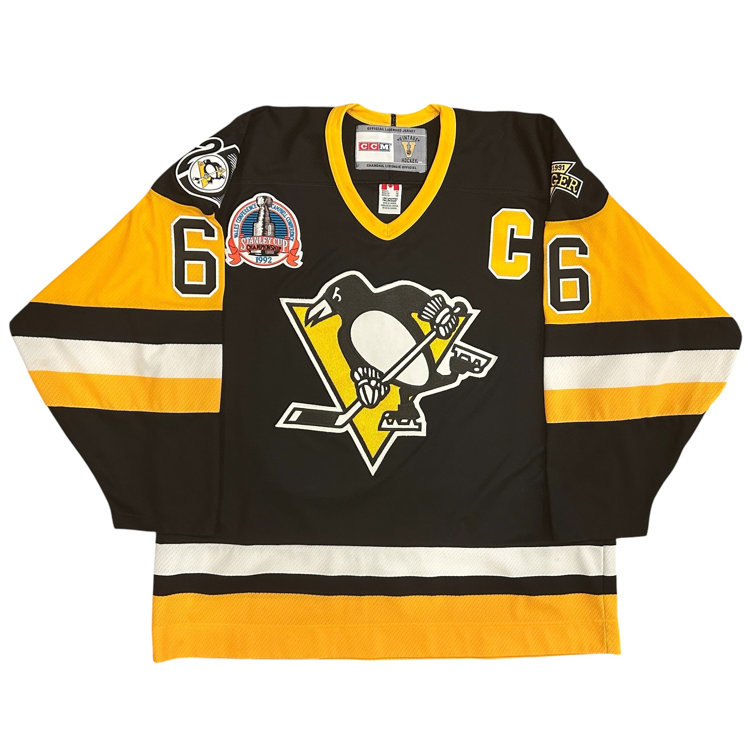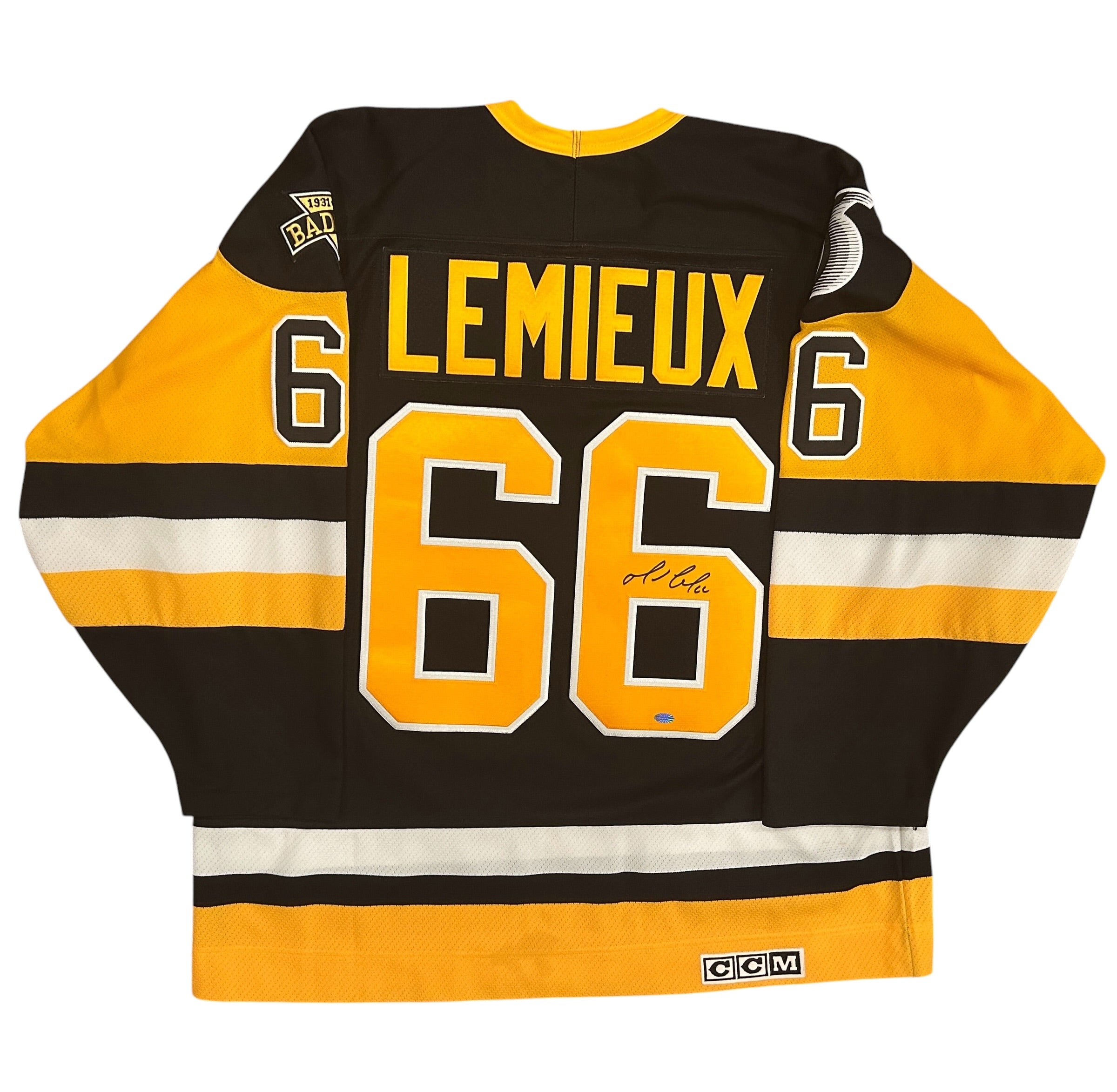 Mario Lemieux Autographed Pittsburgh Penguins CCM Vintage 3-Patch Stanley Cup Jersey, which Mario personally hand-signed. Size XL.