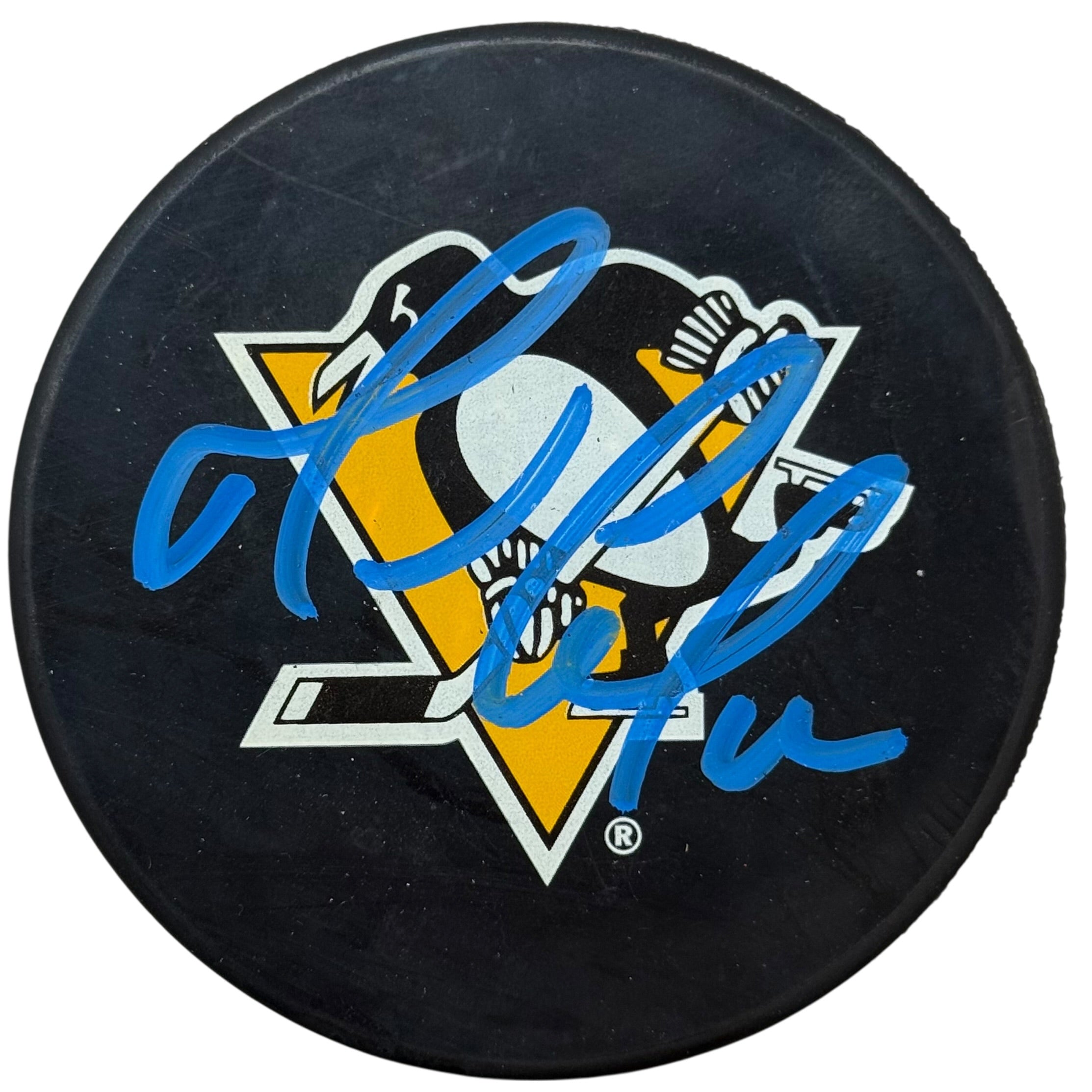 Mario Lemieux Autographed Pittsburgh Penguins Large Logo Hockey Puck, which Mario personally hand-signed.
