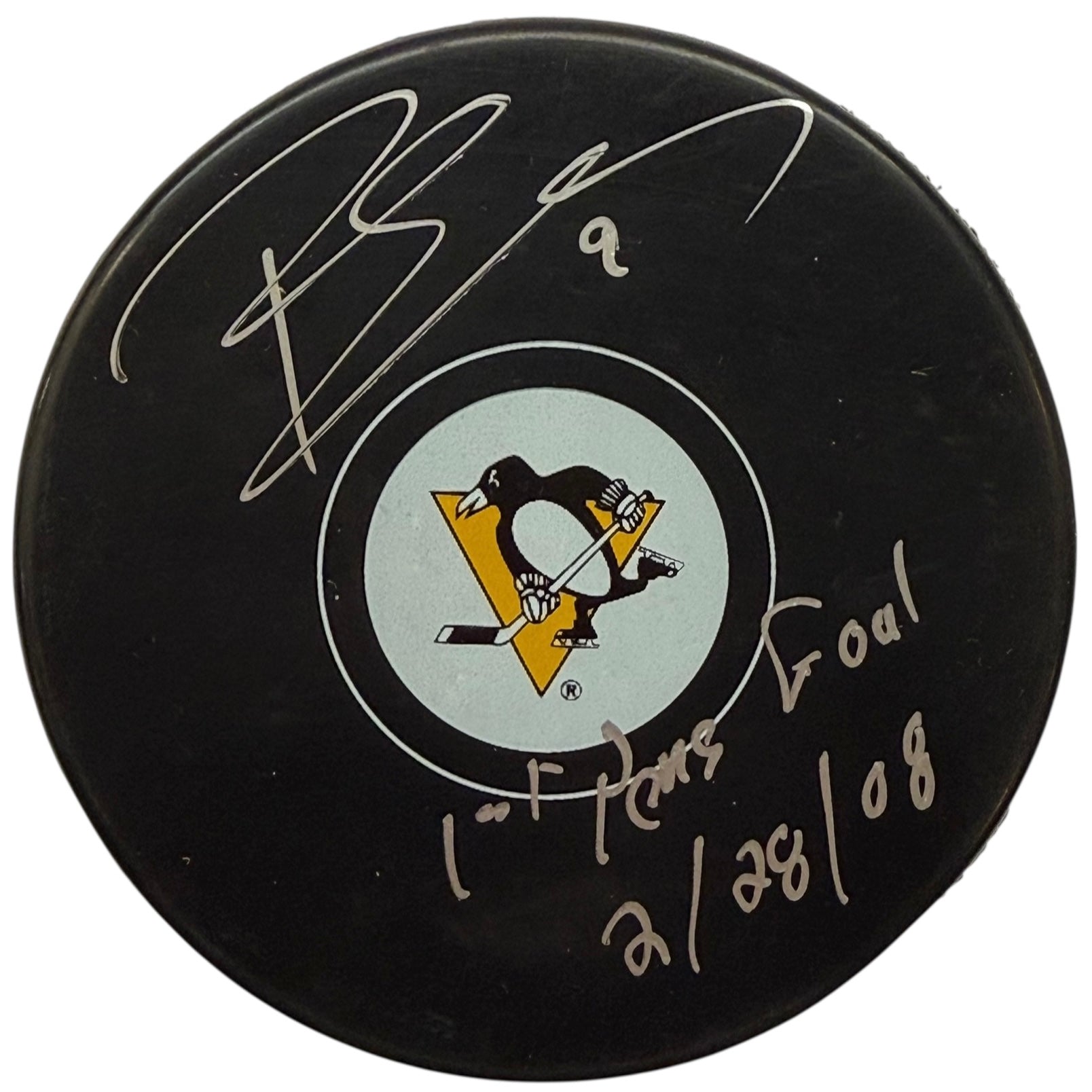 Pascal Dupuis Signed, Inscribed "1st Pens Goal 2/28/08" Pittsburgh Penguins Hockey Puck