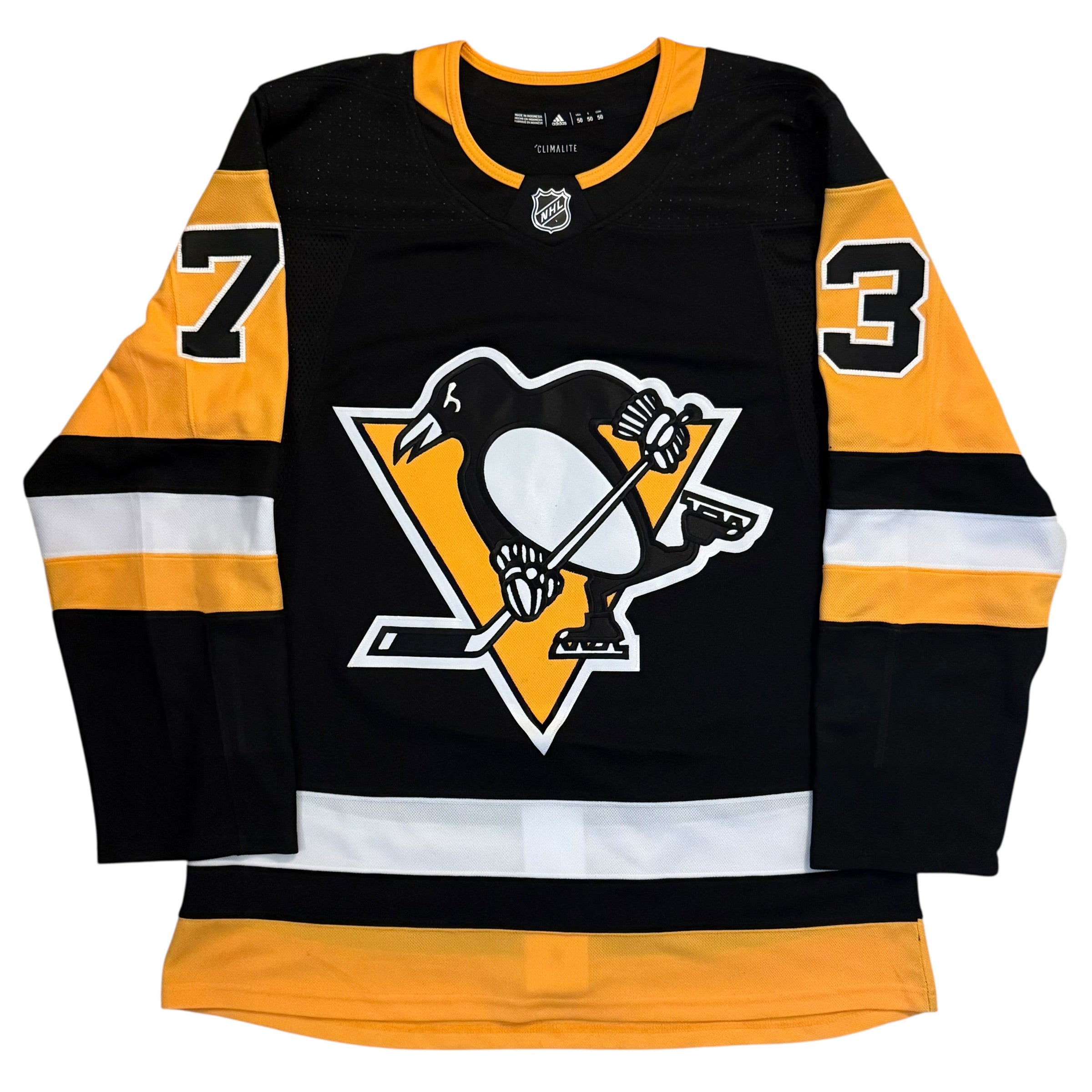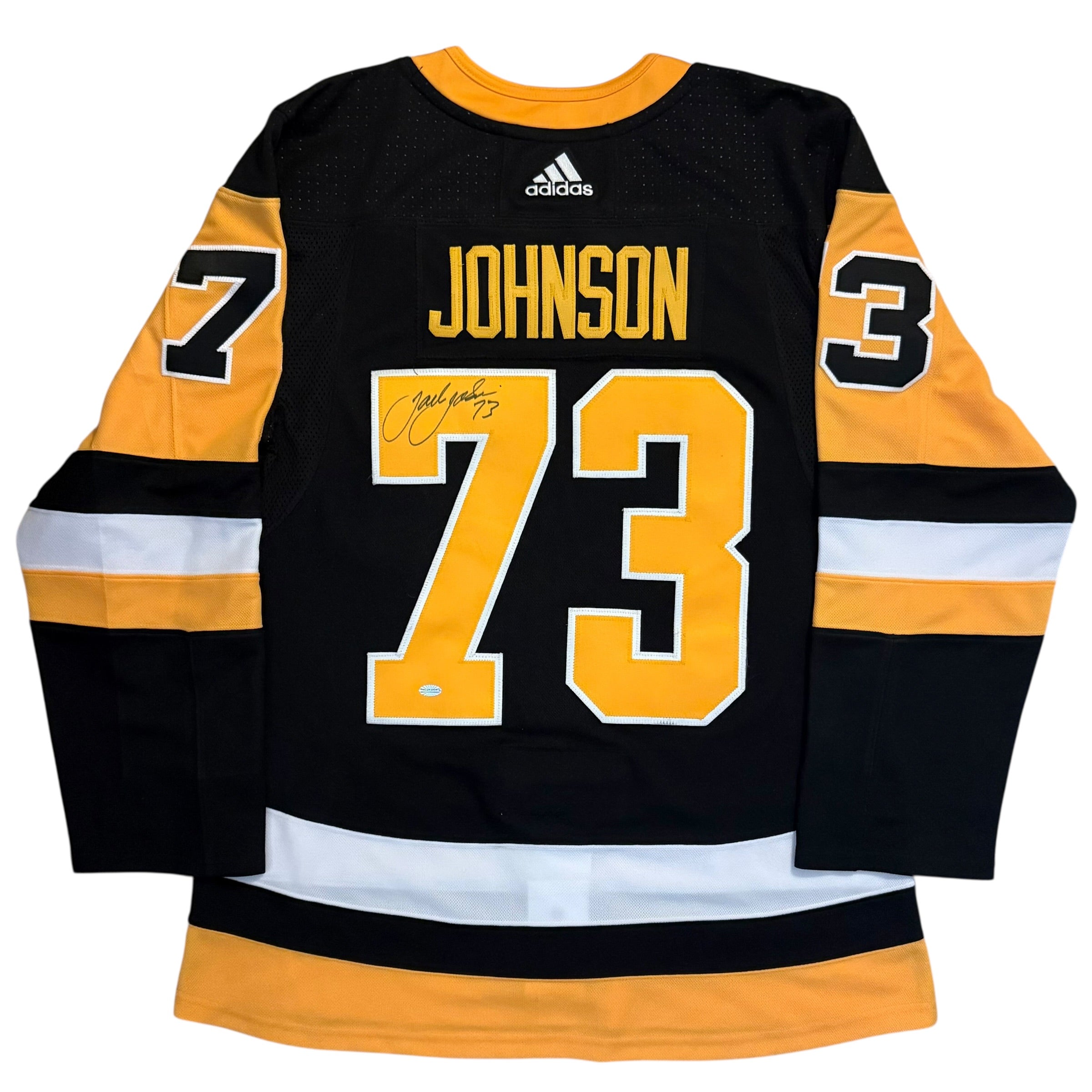 Jack Johnson Autographed Pittsburgh Penguins Adidas Authentic Black Home Jersey with fight strap, which Jack personally hand-signed.