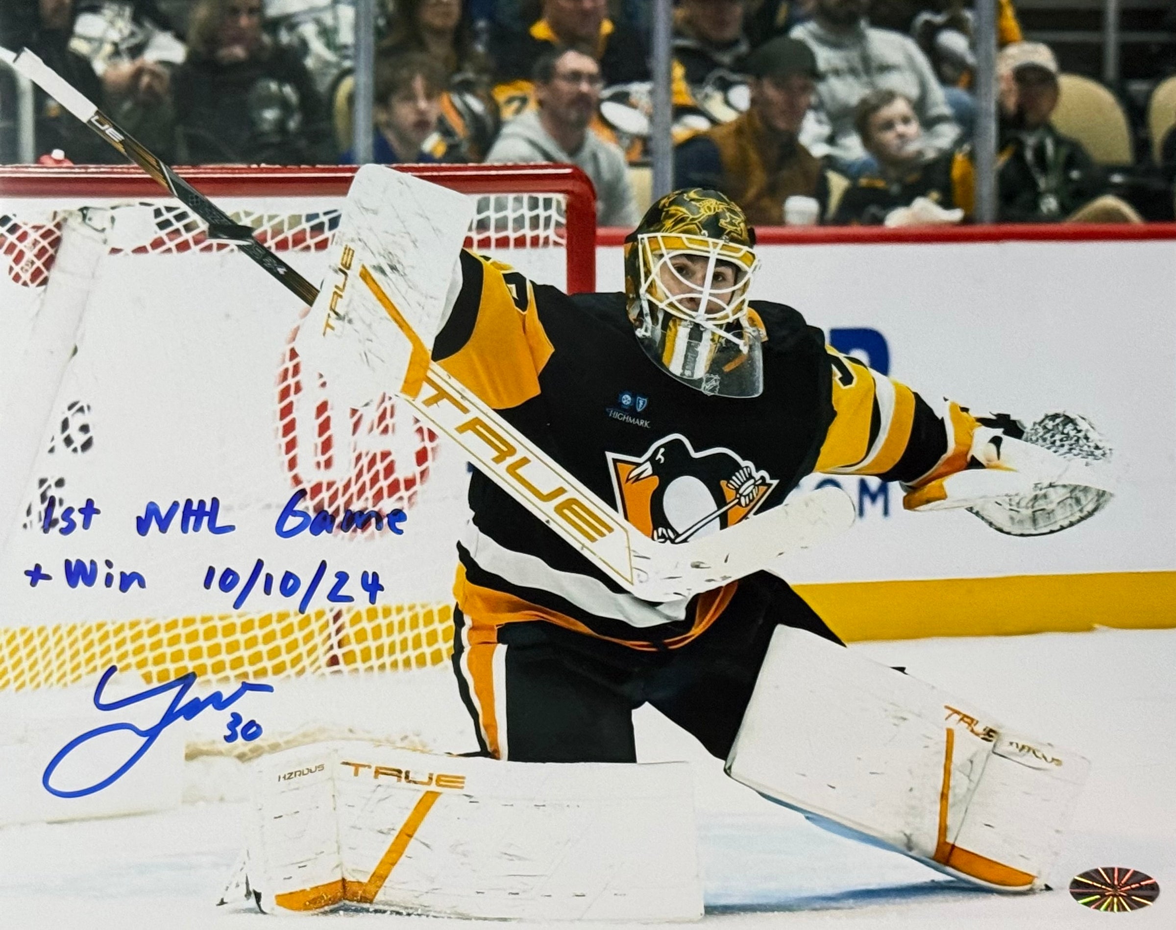 Joel Blomqvist Signed, Inscribed "1st NHL Game + Win 10/10/24" 8x10 Photo