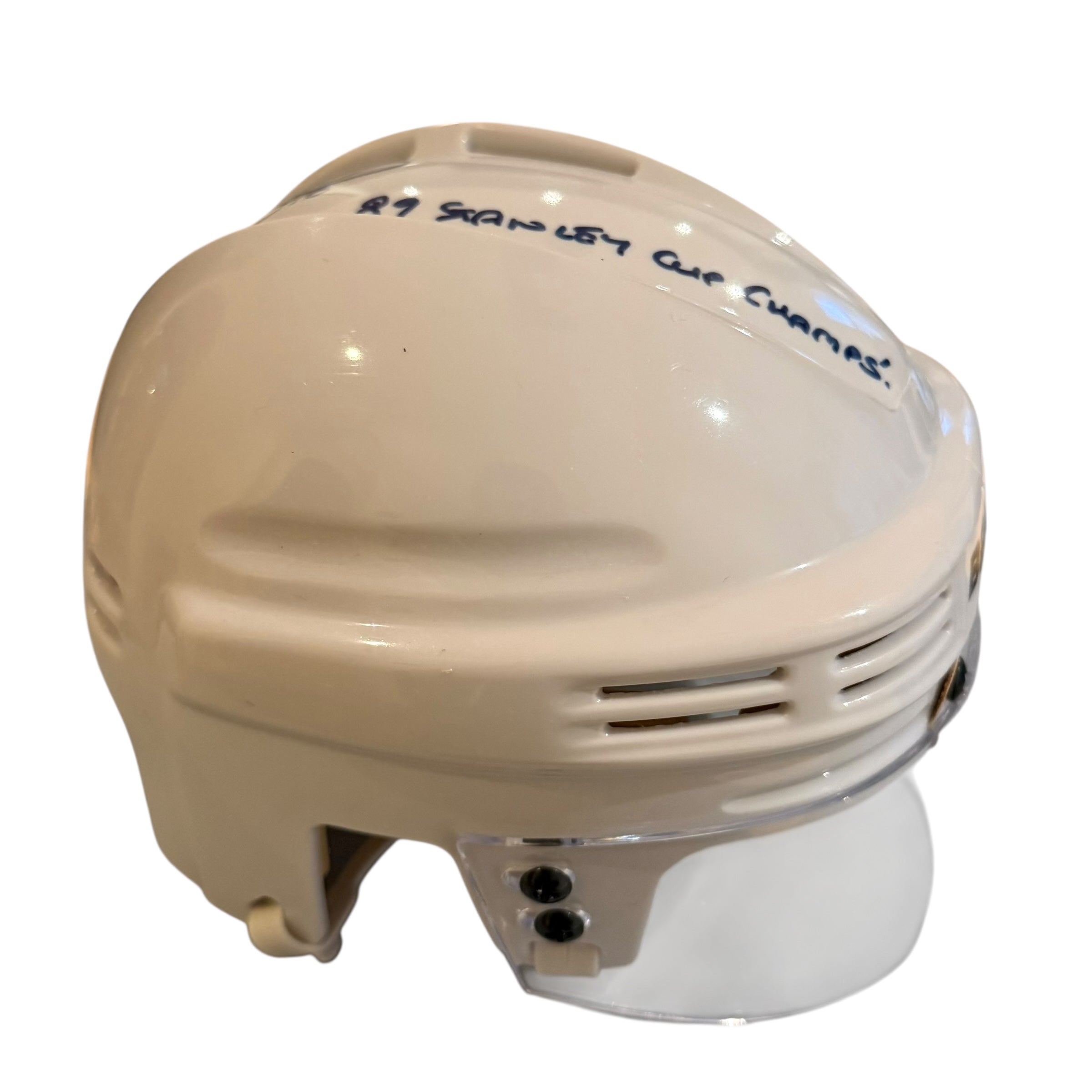 Gary Roberts Autographed Inscribed "89 Stanley Cup Champs!" Mini Helmet, which Gary personally hand-signed. Gary won the 1989 Stanley Cup with the Calgary Flames.